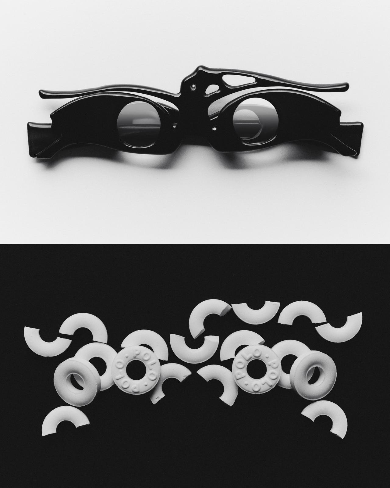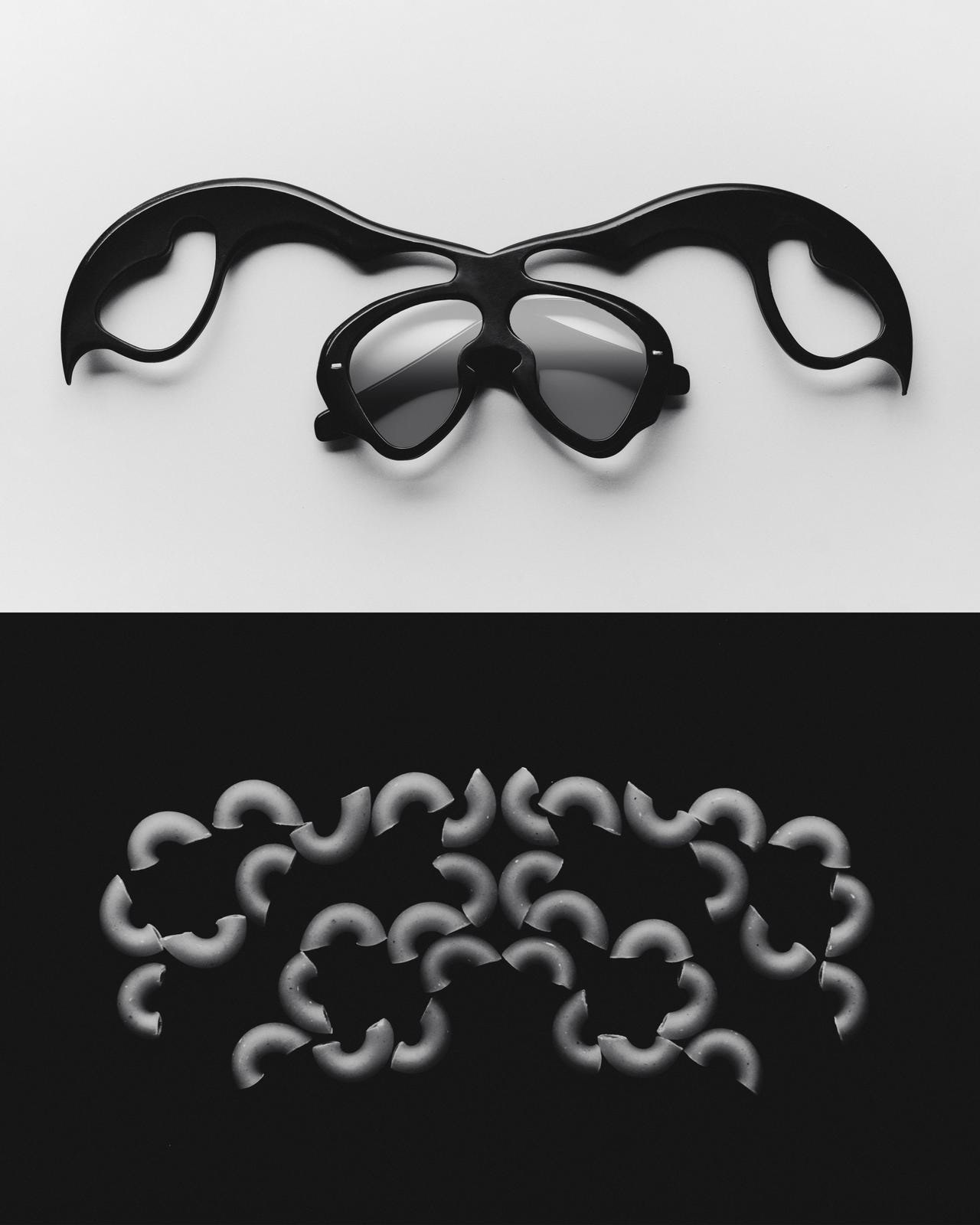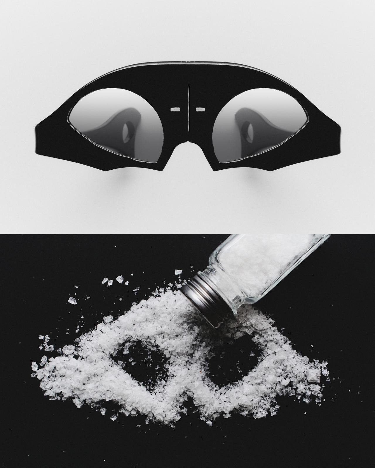 Questa serie fotografica, realizzata in collaborazione con uno studio fotografico londinese, esplora l’occhiale non solo come accessorio funzionale, ma come vero e proprio oggetto scultoreo. Ogni modello dialoga con elementi quotidiani trasformati in simboli visivi: righelli che diventano architetture geometriche, sale che assume la forma di lenti cristalline, sagome grafiche che amplificano linee e curvature.